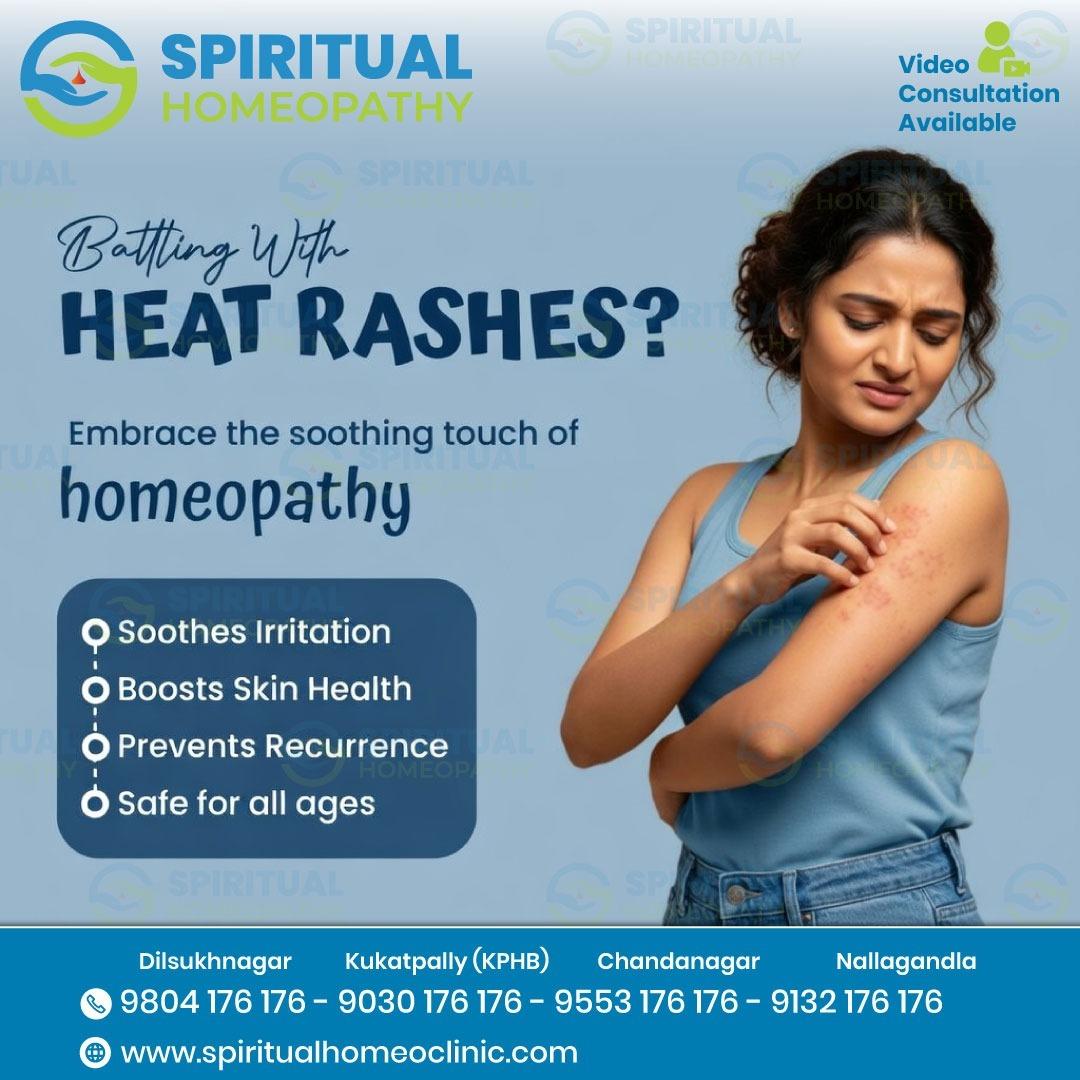 Get expert online homeopathy consultation in Hyderabad for heat rashes at Spiritual Homeopathy. Serving KPHB, Dilsukhnagar, Chandanagar, and Nallagandla with safe, natural, and personalized care for lasting skin relief and improved comfort during summer. https://g.co/kgs/9aeZ24o